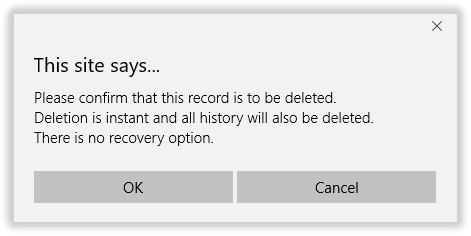 The clearly worded last chance Confirm window is displayed. Click OK to delete, or click Cancel.