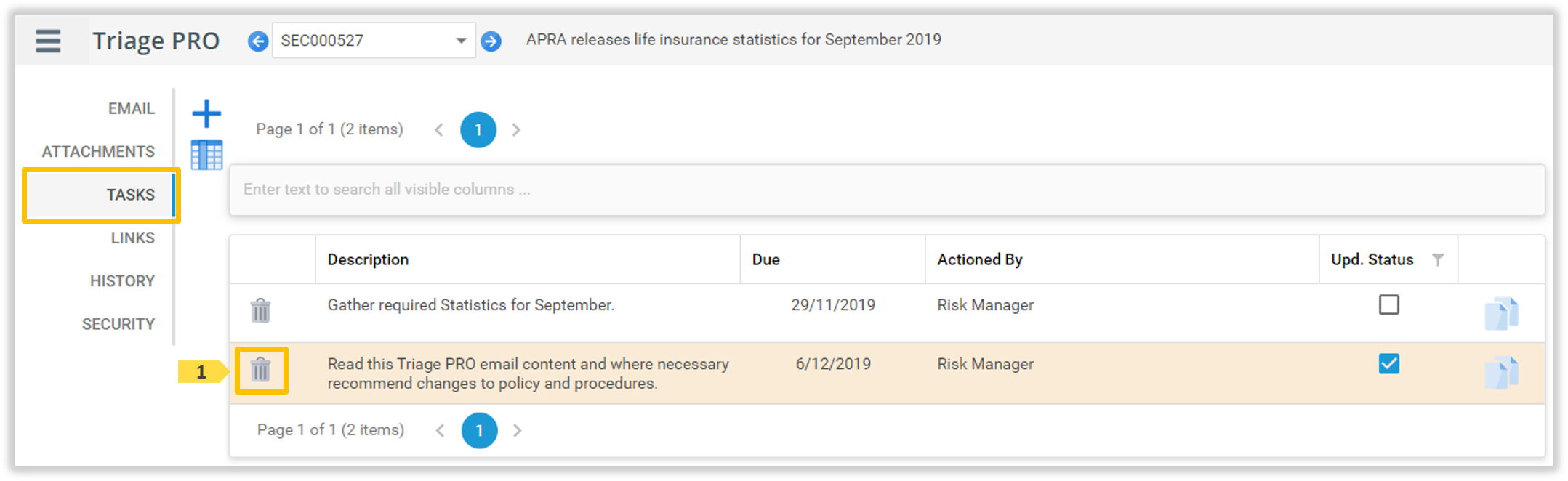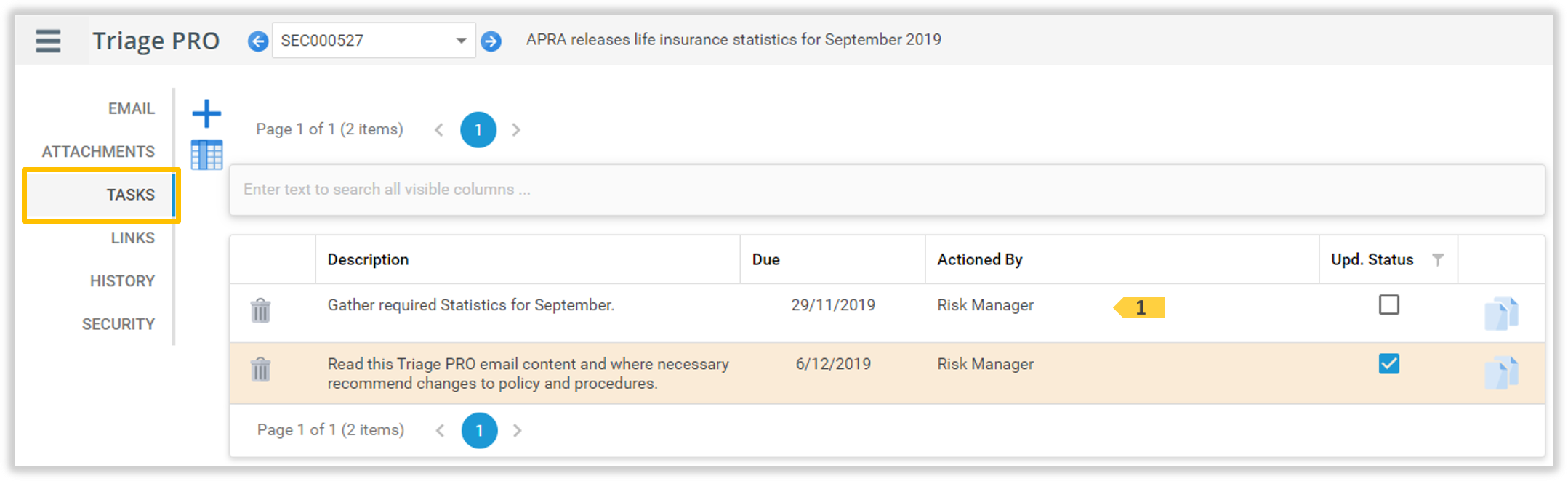 A Task is an instruction or action required to be completed by a specific date. The Task can only to be Actioned By or carried out by one position.
