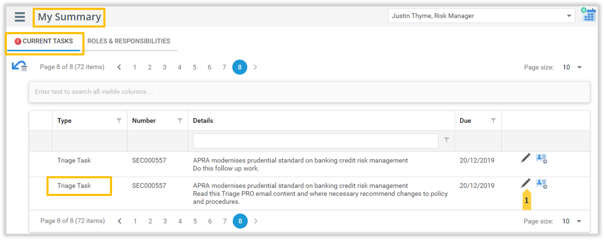 Look for, or filter by, Type Triage Task in the Current Tasks list.