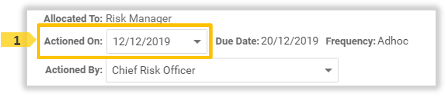 If you wish to change the Actioned On date from today to another date, select the new Actioned On 1 date.