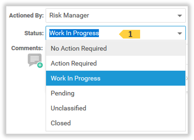 The Update Status Task will display the current Triage PRO record Status. If a different Status is selected, this new Status will be applied to the Triage PRO record on completion of this task.